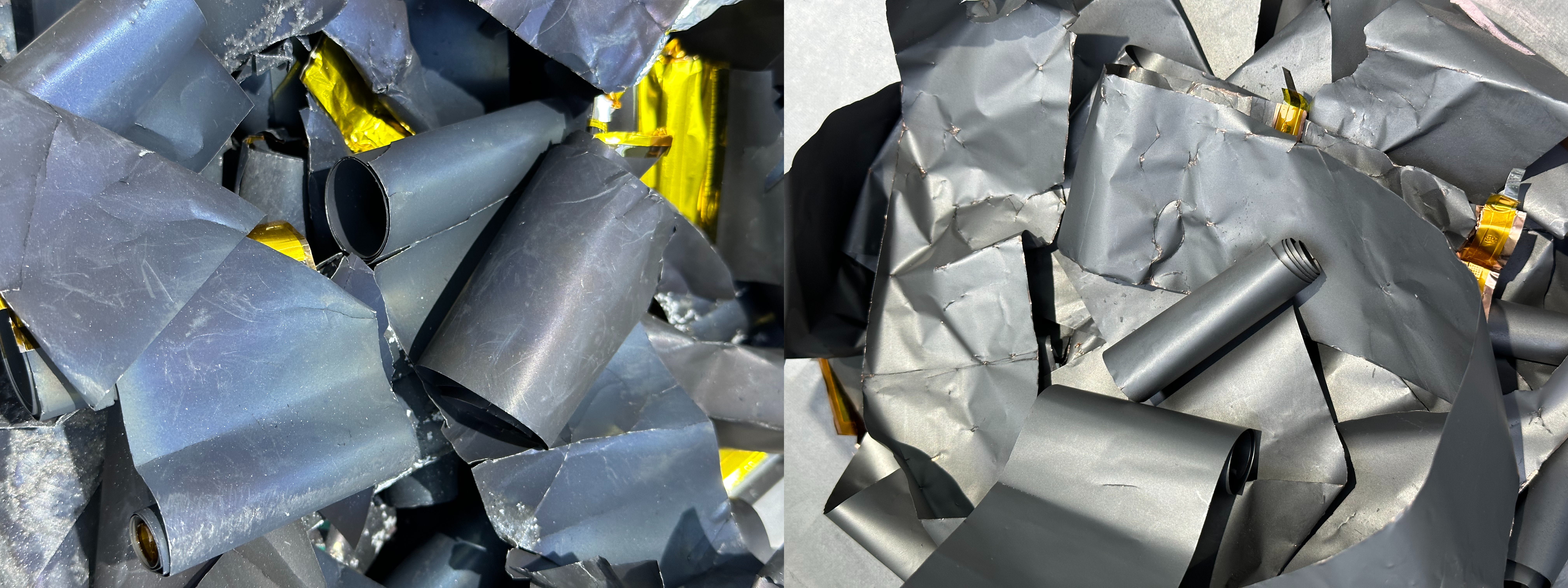 鋰電池極片制造工藝一般流程為:活性物質(zhì),粘結(jié)劑和導(dǎo)電劑等混合制備成漿料,然后涂敷在銅或鋁集流體兩面,經(jīng)干燥后去除溶劑形成干燥極片,極片顆粒涂層經(jīng)過(guò)壓實(shí)致密化,再裁切或分條。然后正負(fù)極極片和隔膜組裝成電池的電芯,封裝后注入電解液,經(jīng)過(guò)充放電激活,最后形成產(chǎn)品。正極是通過(guò)起粘結(jié)作用的PVDF將鈷酸鋰粉末涂布于鋁箔集流體兩側(cè)構(gòu)成;負(fù)極結(jié)構(gòu)與正極類似,由碳粉粘結(jié)于銅箔集流體兩側(cè)構(gòu)成。目前,廢鋰電池資源化研究主要集中于價(jià)值高的正極貴重金屬鈷和鋰的回收,對(duì)負(fù)極材料的分離回收鮮見報(bào)道。恒創(chuàng)睿能將廢棄正負(fù)極片回收處理成正極材料、銅、鋁、碳粉各種材料。