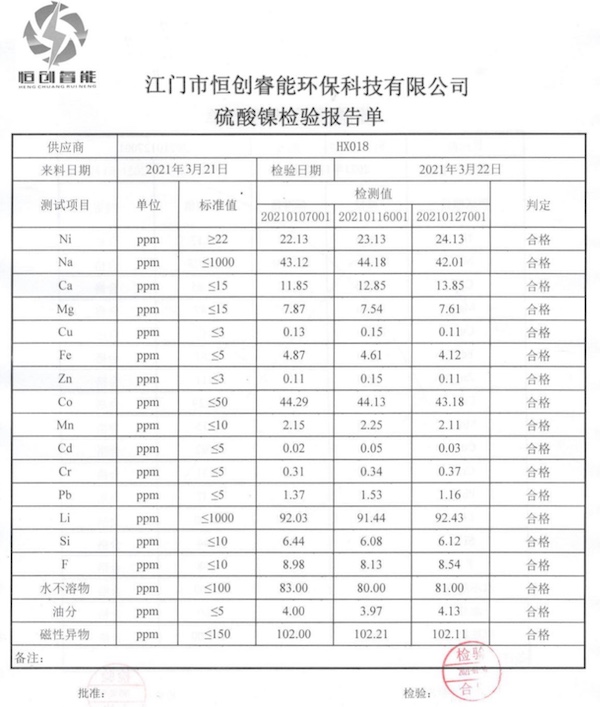 硫酸鎳是一種無(wú)機(jī)物,有無(wú)水物(NiSO4)、六水物和七水物三種。商品多為六水物,有α-型和β-型兩種變體,前者為藍(lán)色四方結(jié)晶,后者為綠色單斜結(jié)晶。加熱至103°C時(shí)失去六個(gè)結(jié)晶水。易溶于水,微溶于乙醇、甲醇,其水溶液呈酸性,微溶于酸、氨水,有毒。主要用于電鍍工業(yè),是電鍍鎳和化學(xué)鎳的主要鎳鹽,也是金屬鎳離子的來(lái)源,能在電鍍過(guò)程中,離解鎳離子和硫酸根離子。