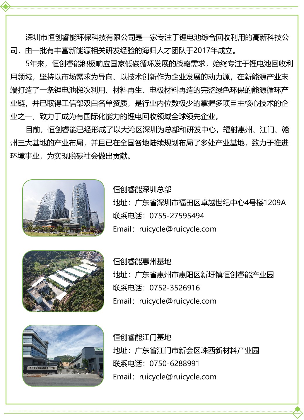 白峰強(qiáng)調(diào),恒創(chuàng)睿能擁有綜合梯次利用與資源再生利用的一個(gè)長產(chǎn)業(yè)鏈條,作為大力推動(dòng)國內(nèi)可再生能源發(fā)展的開拓者,最大的市場抓手在于城市礦山的采礦權(quán)。恒創(chuàng)睿能正在積極尋求緊密與新能源生產(chǎn)和應(yīng)用企業(yè)合作,共同探討可持續(xù)發(fā)展方案,加速推進(jìn)能源可持續(xù)利用產(chǎn)業(yè),用創(chuàng)新的回收技術(shù)布局全球鋰電池回收市場。